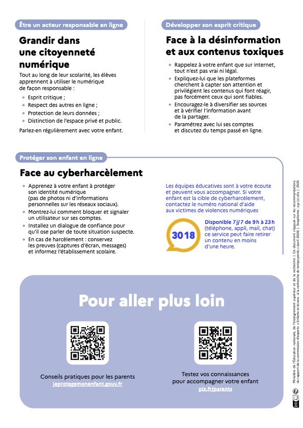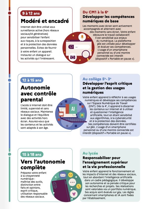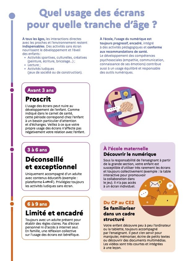 Ci joint une information du ministère de l'Education sur les repères des temps d'usage des écrans des enfants, selon leur âge.
