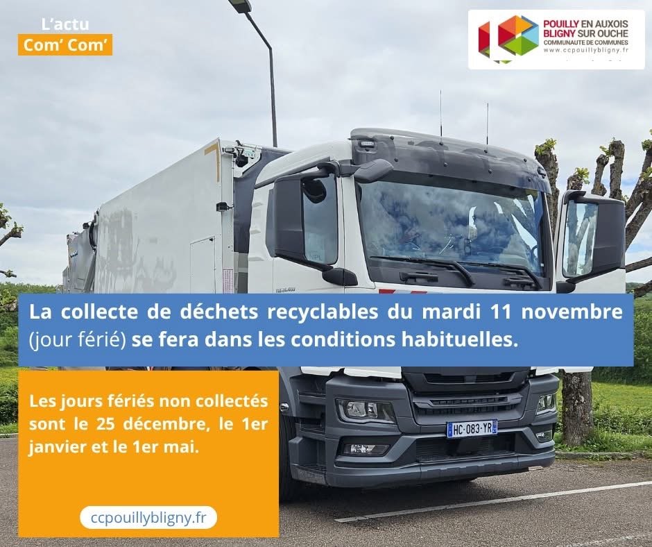 Le ramassage des ordures ménagères (poubelle jaune) du mardi 11 novembre est maintenu.