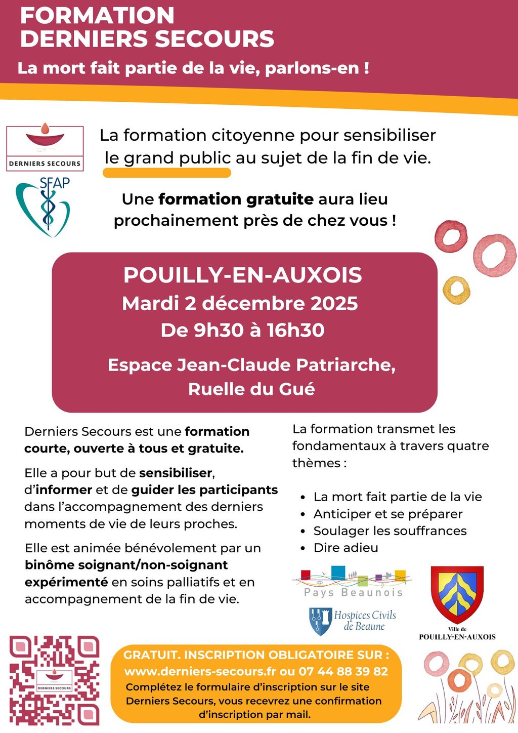 Pour s’inscrire : https://www.derniers-secours.fr ou 07 44 88 39 82.