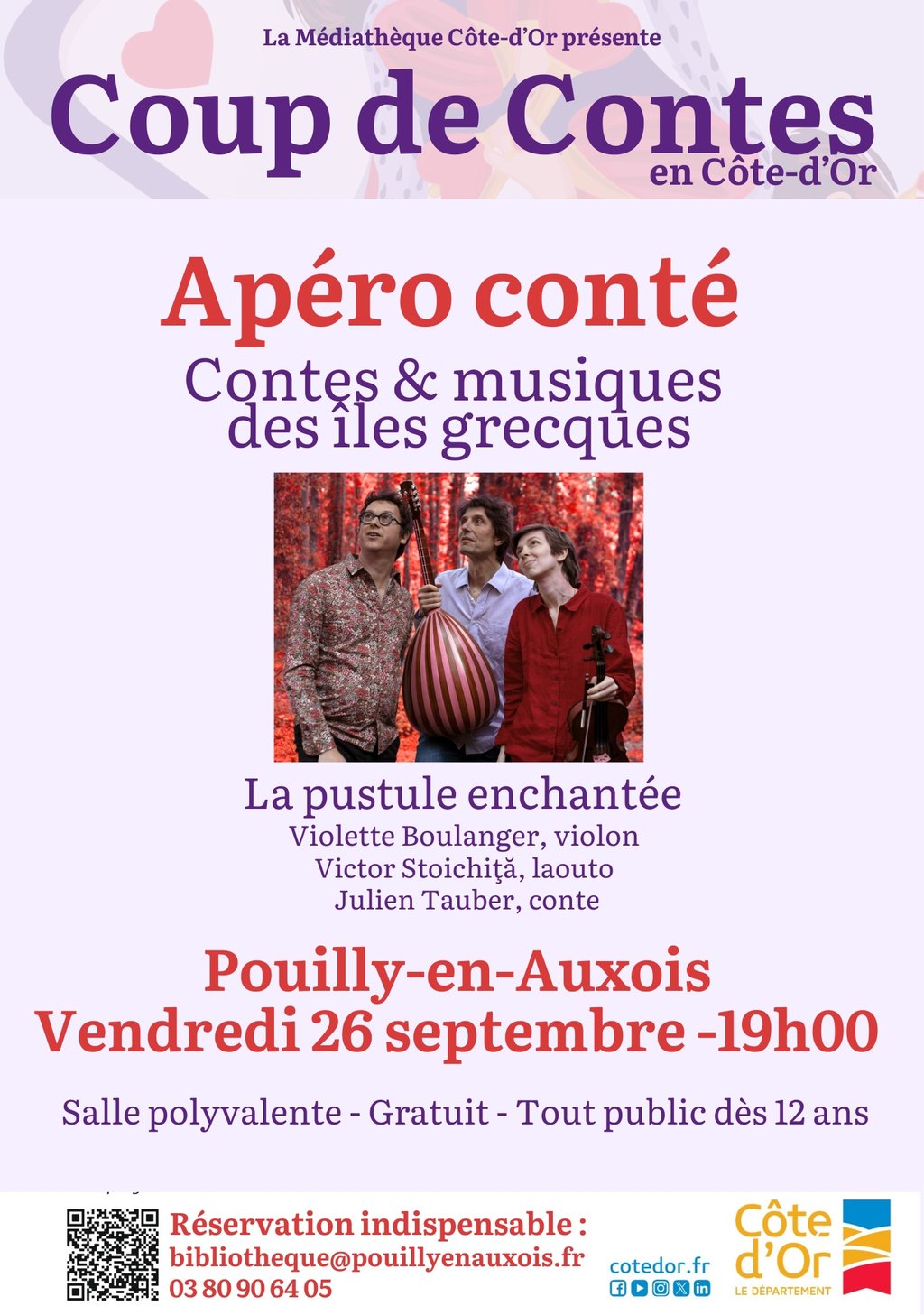 Réservation indispensable à bibliotheque@pouillyenauxois.fr ou au 03 80 90 64 05 (places limitées)