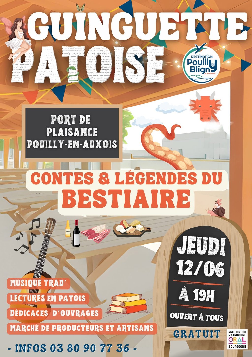 il y aura de la musique, des chansons, des contes, des histoires…en bourguignon, bien sûr !...on causera des animaux fantastiques, des drôles de bêtes qui circulent dans les bois, les coteaux et les chaumes…ou qui sortent des puits et des mares : la Mère-Lousine, la Bête du Gravot, les luternes, les Galipottes, le Coquadrille…et encore bien des autres…il ne faudra assurémént pas en avoir peur !